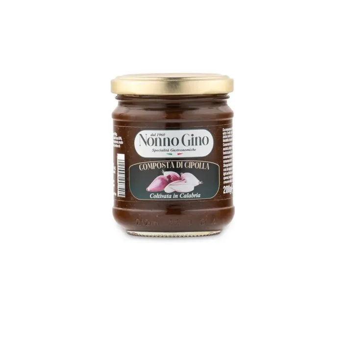 La Composta di Cipolla Nonno Gino nasce da cipolle rosse coltivate in Calabria e lavorate dal fresco. il sapore della grigliatura, bilanciata con zucchero e aceto la rende una composta morbida al palato adatta anche a chi non ama il sapore intenso della cipolla. Ideale per l’abbinamento a formaggi, piatti di carne o antipasti gourmet.