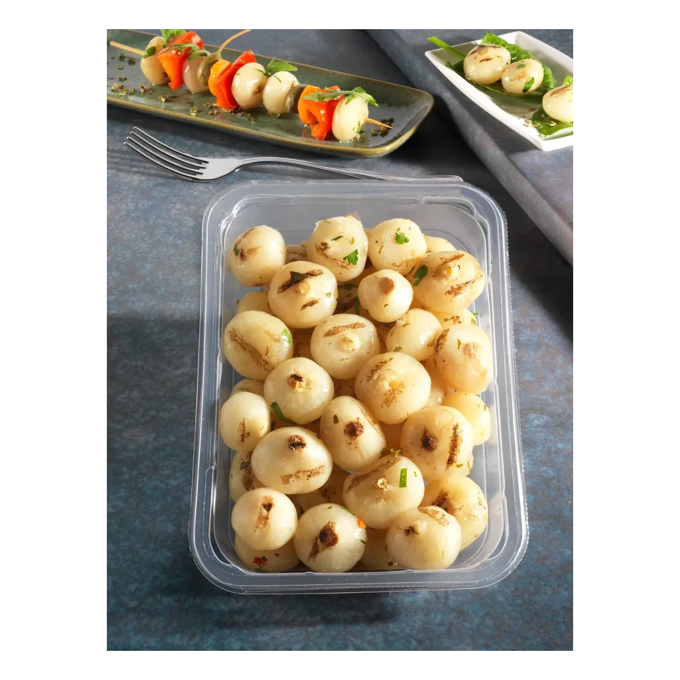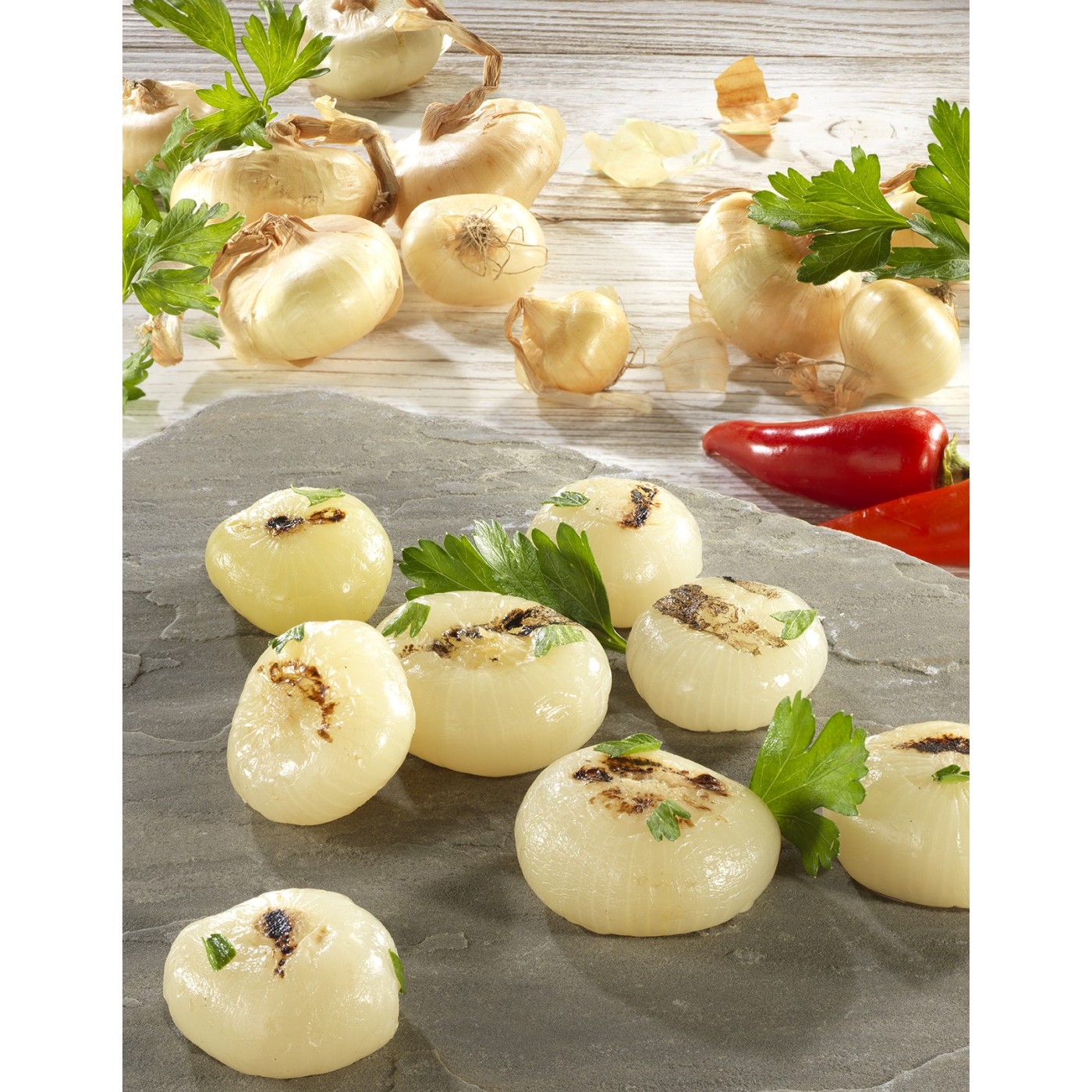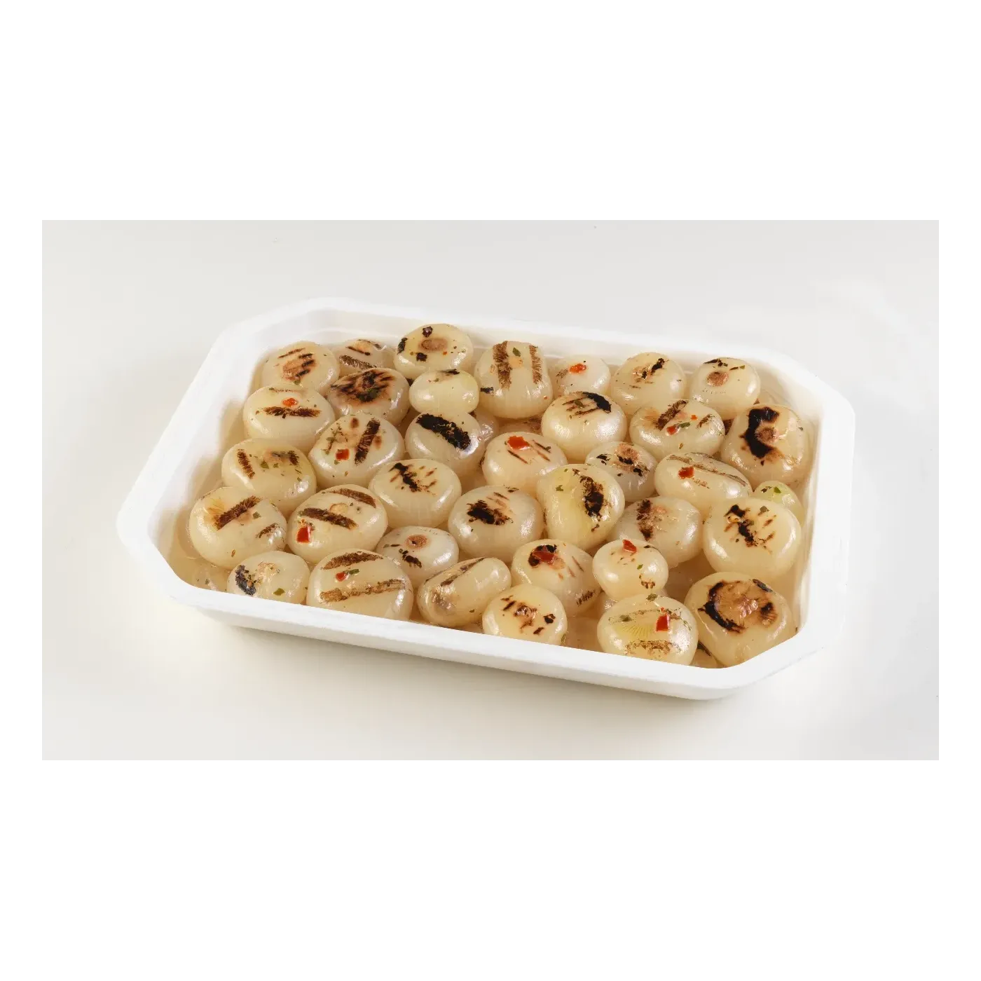 Cipolline borettane grigliate lavorate da coltivazioni Italiane, Immerse in olio di semi di girasole e aromatizzate con spezie mediterranee.