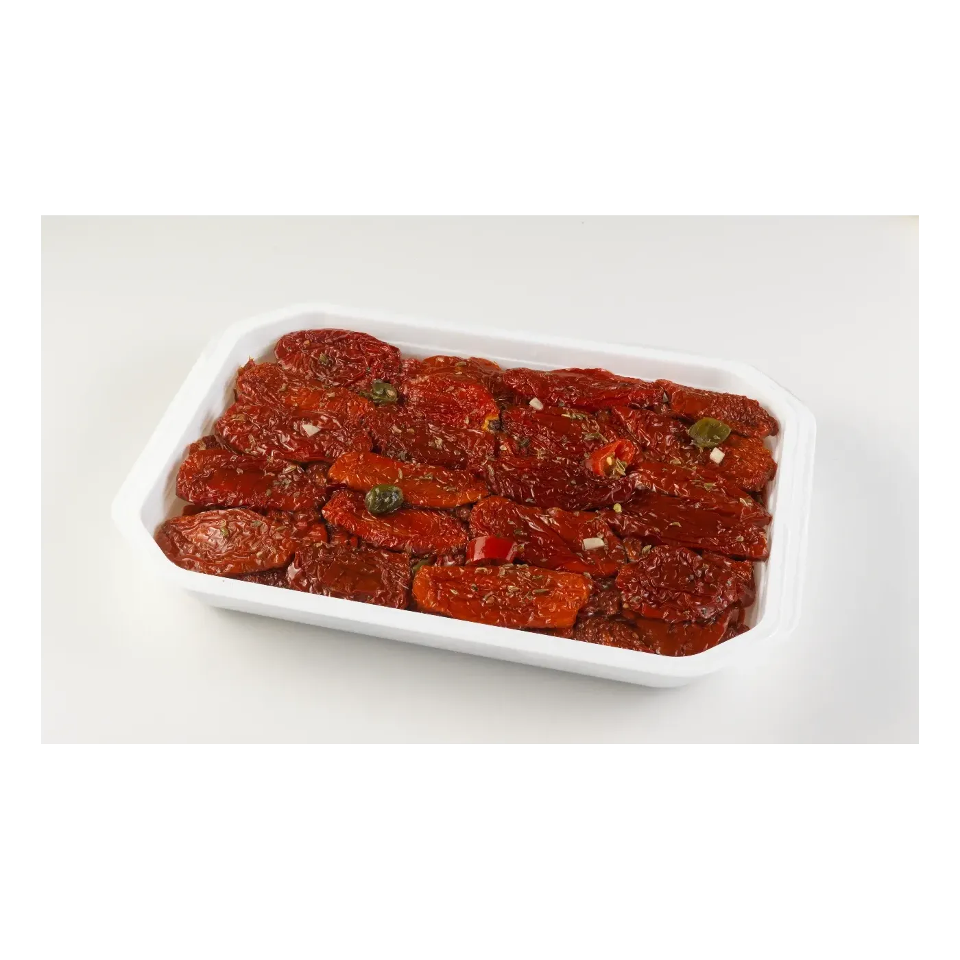Pomodori essiccati naturalmente e conservati in olio di semi di girasole con spezie mediterranee. Ricetta tradizionale, sapore intenso e concentrato. Pronti all’uso, ideali per ristorazione, gastronomia e preparazioni professionali.