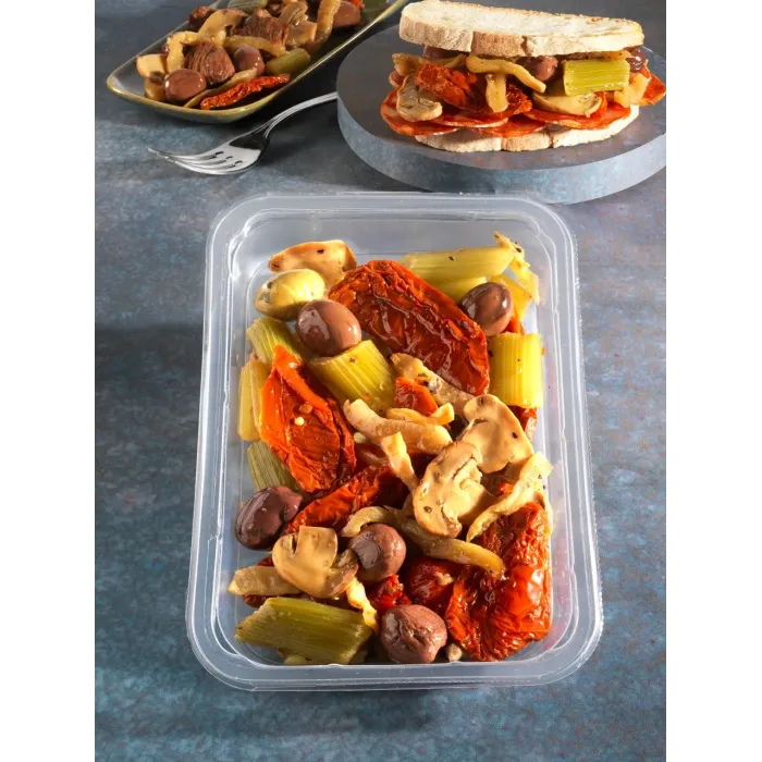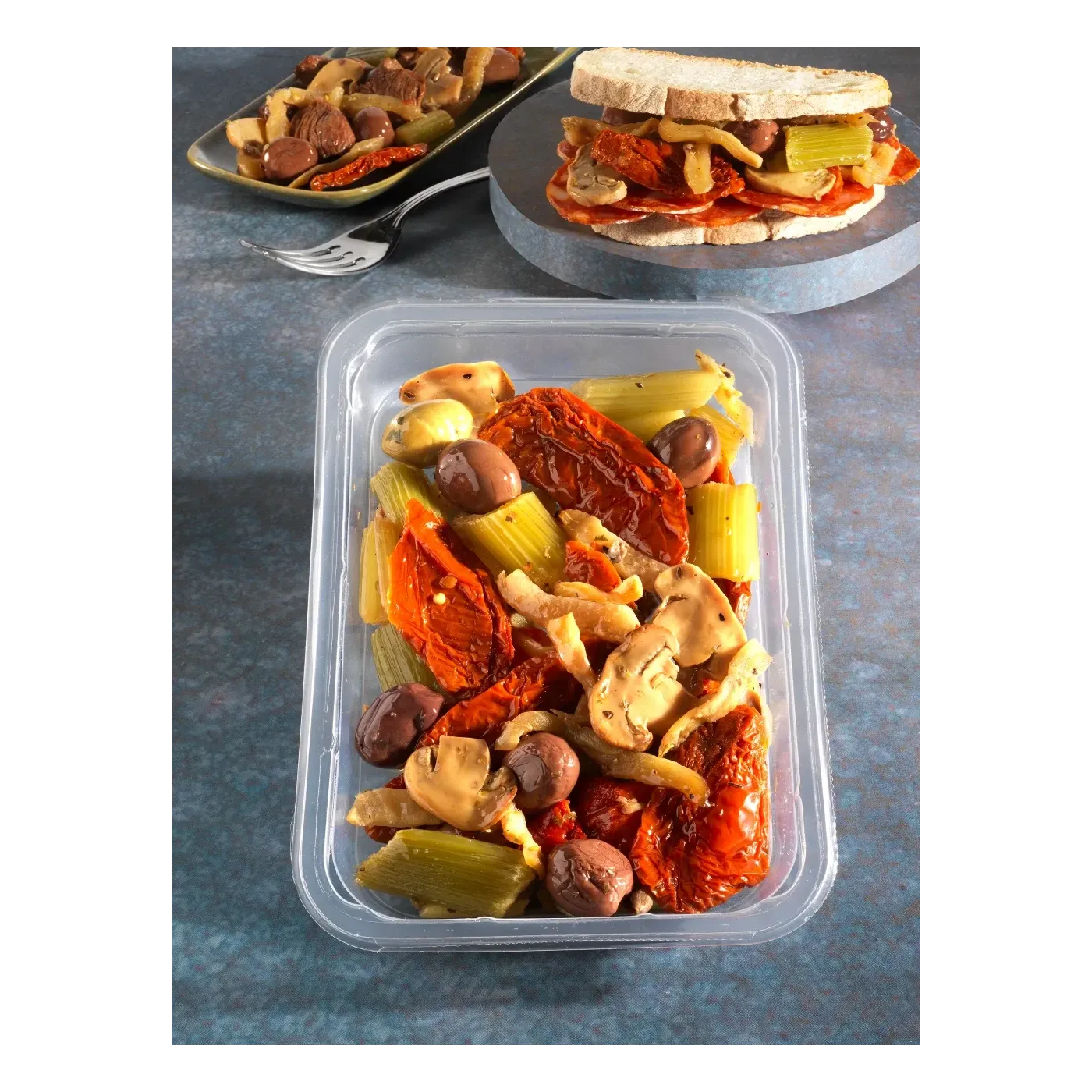 L’antipasto alla Calabrese è realizzato con un mix di ortaggi selezionati e lavorati a mano. Conservati sott’olio di semi di girasole e spezie. ideali per arricchire antipasti, taglieri e aperitivi.